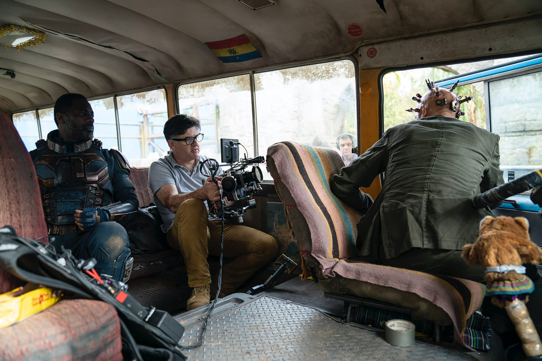 Braham points out that King Shark (voiced by Sylvester Stallone) was created with special effects and prosthetics in keeping with the desire to keep as much in-camera as possible. Likewise, the filmmakers opted to shoot jungle scenes on stages at Pinewood (now Trilith) Studios in Atlanta and beautiful locations in Panama, rather than use virtual production techniques.